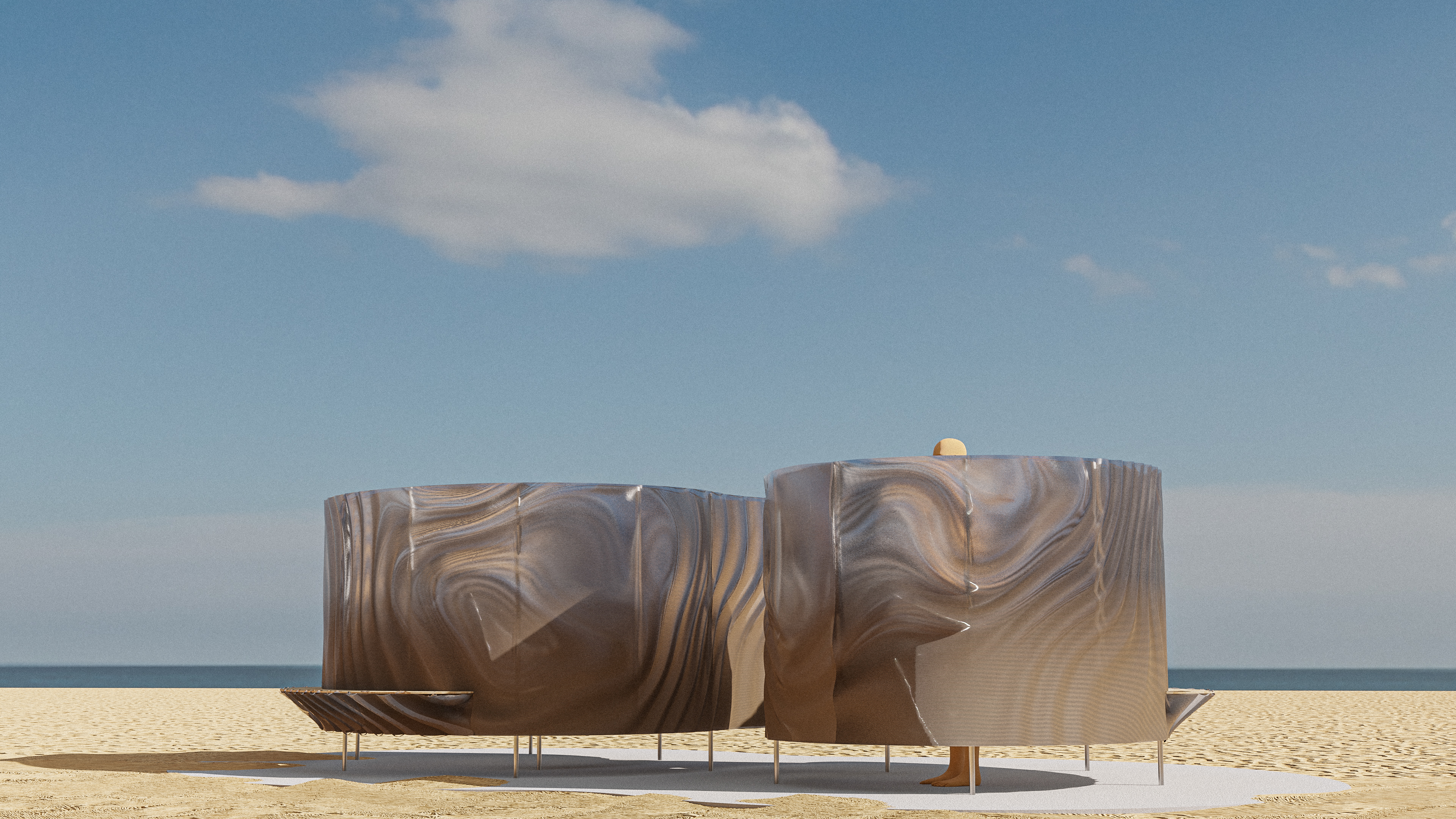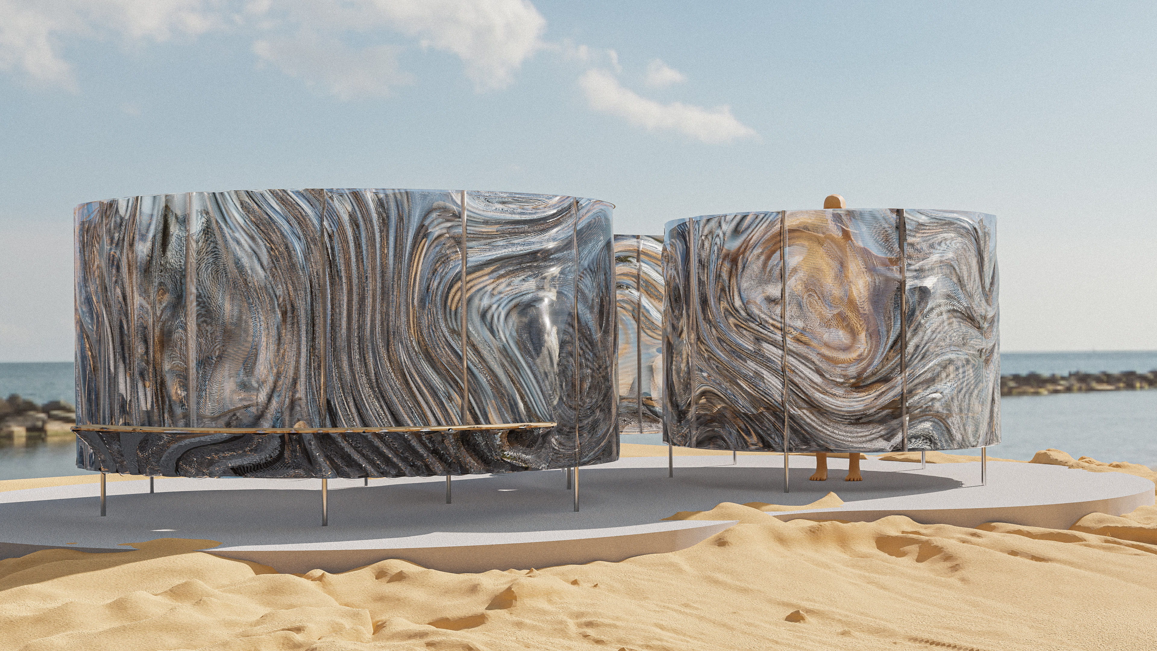 Wood-polymer-composite printed, beach changing booth